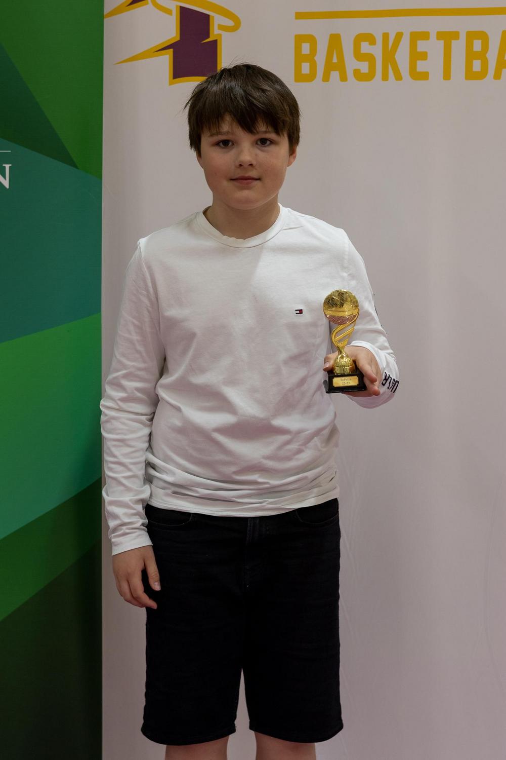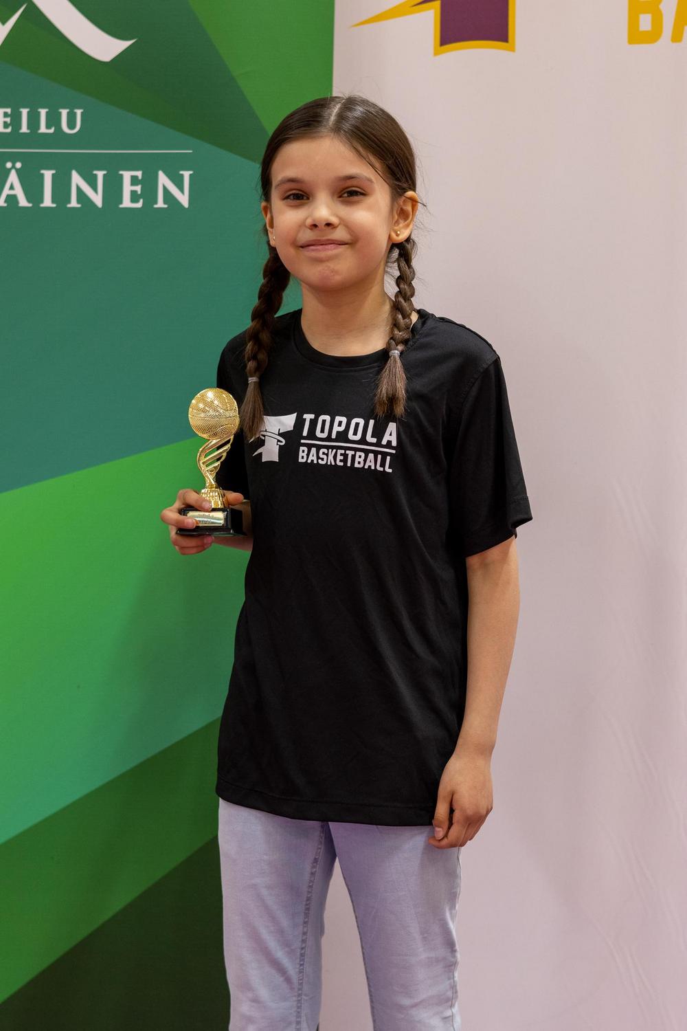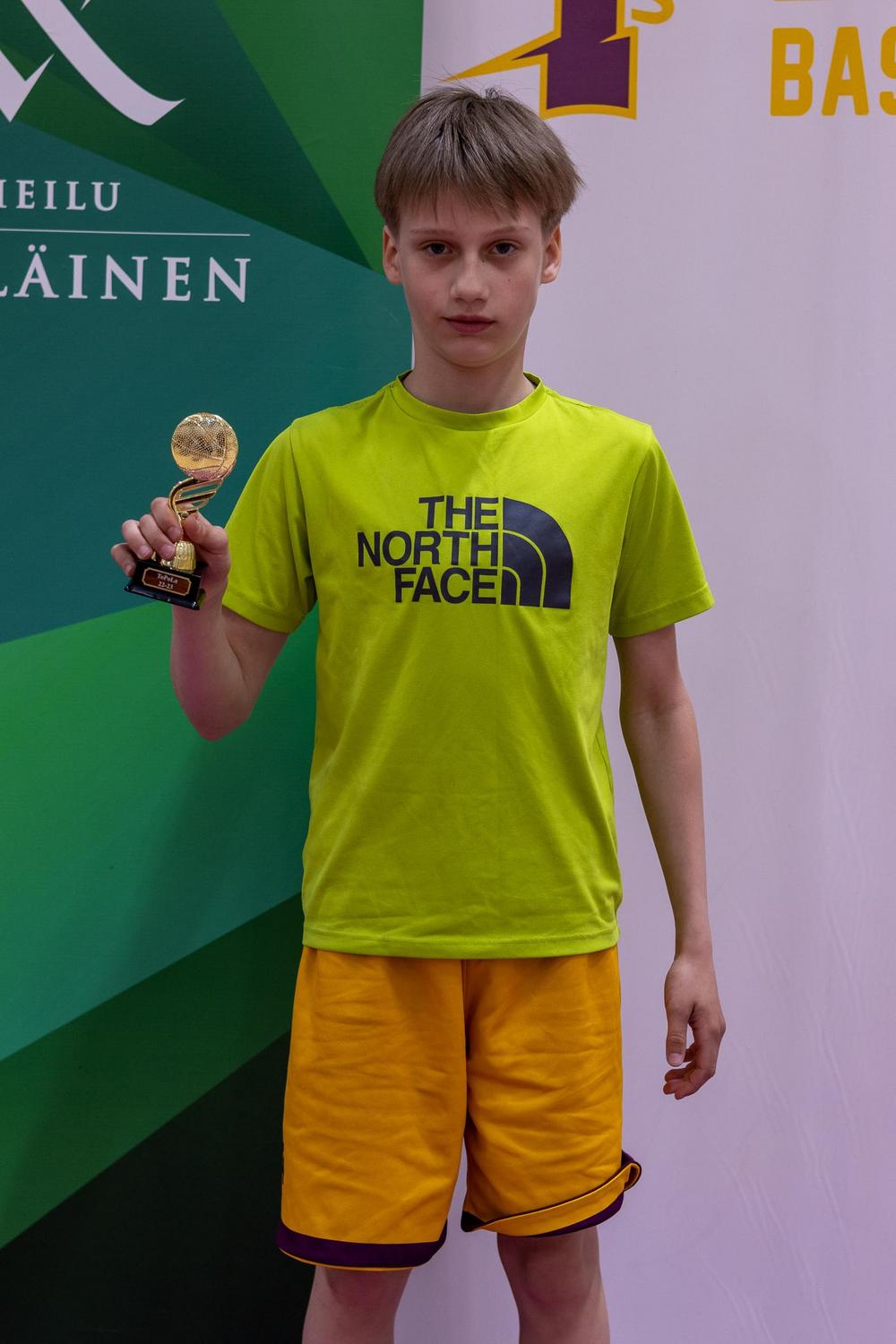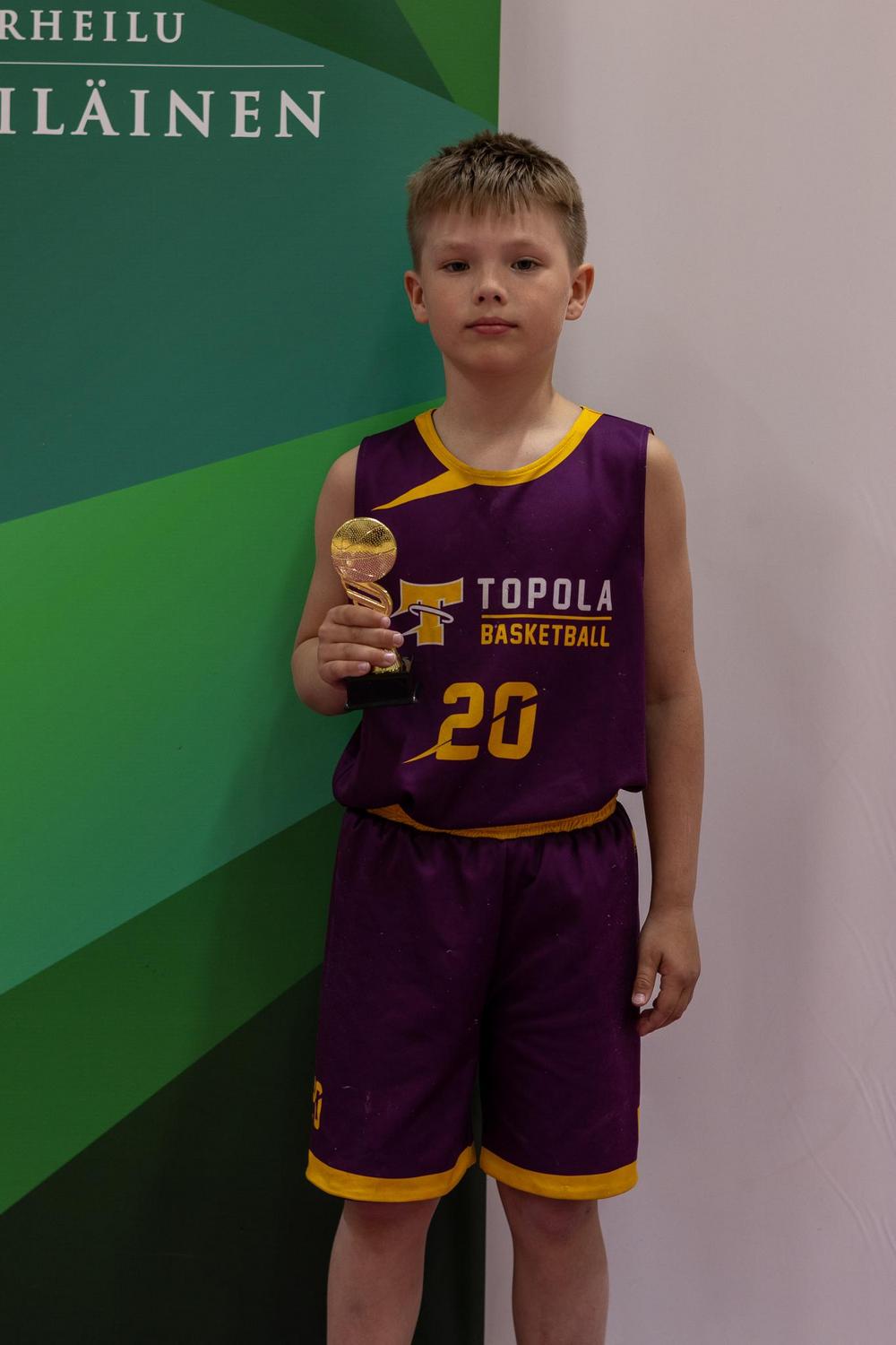 Kauden kehittynein: Tämä pelaaja on mennyt hurjasti eteenpäin kauden aikana. Hänen pallonkäsittely on parantunut ja kikkoja löytyykin nykyisin tosi monipuolisesti. Aktiivinen treenaaminen ja into liikuntaan ja korikseen näkyy selkeästi nopeassa kehityksessä. Huikea kehitysaskel on kauden aikana tullut myös valmentajien ohjeiden kuuntelemisessa. Hän on hyvä joukkuepelaaja ja hieno tsemppari puolustuksessa. - VERTTI KALELA
