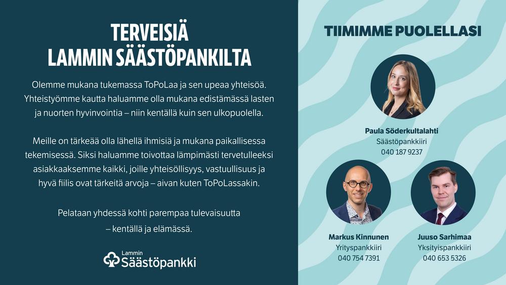 ToPoLa ja Lammin Säästöpankki ovat sopineet yhteistyöstä alkaen vuodesta 2025.